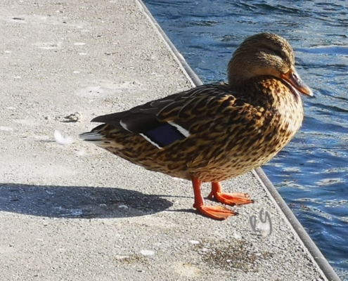 Eine Ente auf dem See- sie sieht anders aus als die anderen Enten.…