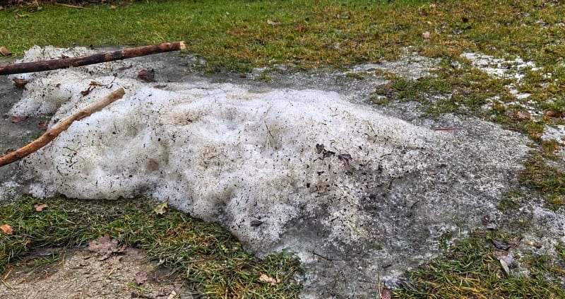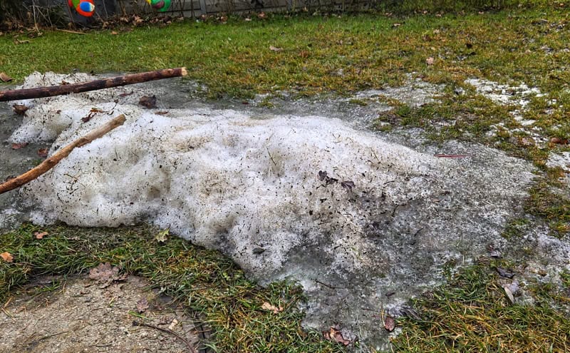Ein Schneerestberg im Schatten.