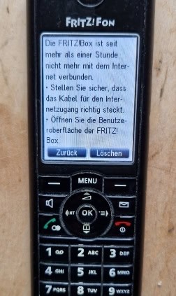 Jetzt suchte der Netzanbieter nach dem Fehler. Er hat gefunden. Irgendwo zwischen Aufkirch und der Langgasse lief in eine Muffe Wasser (was immer das genau bedeutet). 2-3 Tage soll es dauern, bis der Fehler behoben ist. Beim letzten Mal wurden daraus über 3 Wochen.