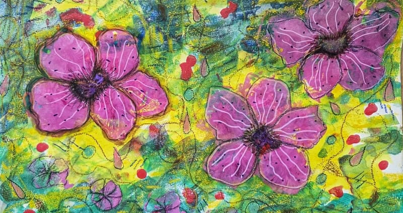 Ich setze gelbe Flächen. Gelb wie die Sonne, die mir den Frühling zeigt. Dazwischen Grün und Blau. So verbinde ich Erde und Himmel. In diesem Raum lebe ich. In diesen Raum bin ich gestellt. Hier ist mein Platz. Die leere Leinwand meines Tages füllt sich. Rote Nähe Tupfen mischen sich mit rosaroten Ich-darf-Blüten.