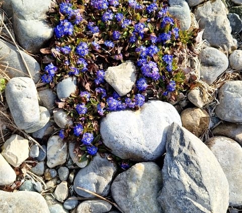 Ich sehe mich um. Entdecke Blau. Das Bodenseevergissmeinnicht blüht. Wie schön.