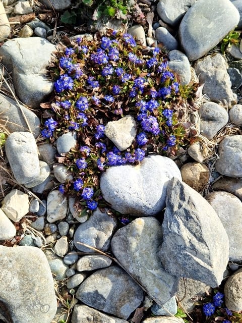 Ich sehe mich um. Entdecke Blau. Das Bodenseevergissmeinnicht blüht. Wie schön.